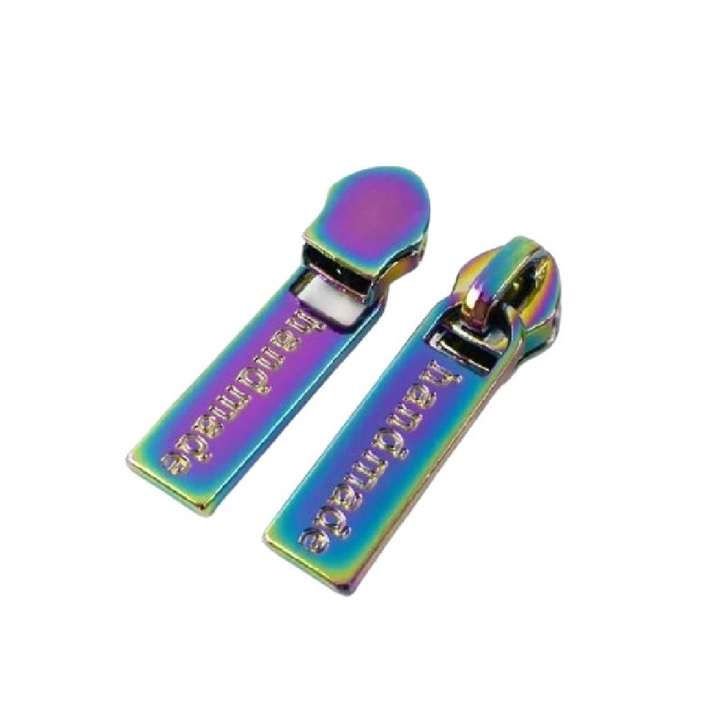 Bežec k špirálovému zipsu 5 mm / dúhový / palička / s nápisom handmade