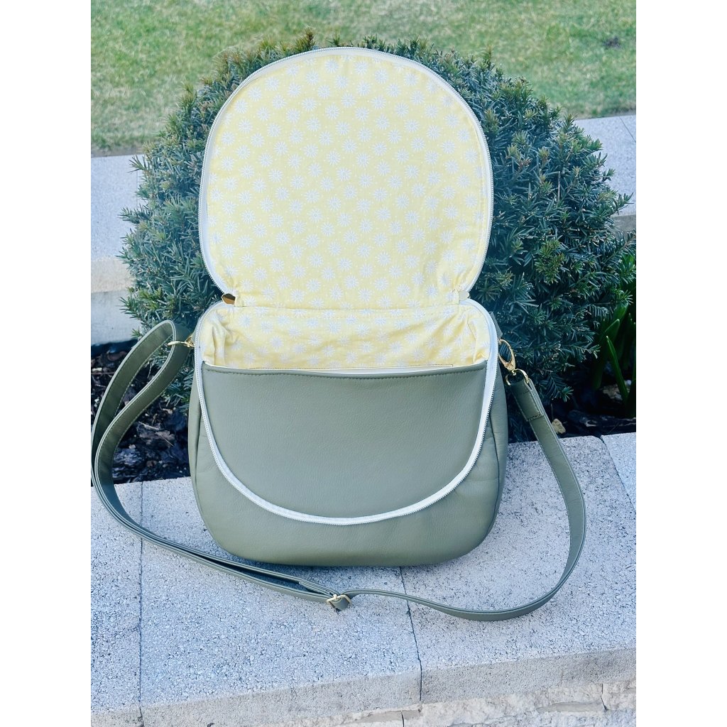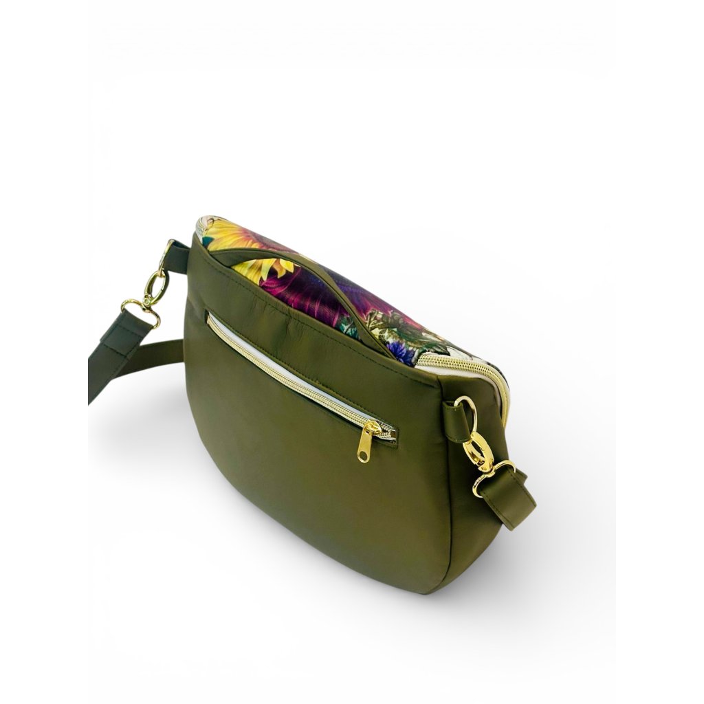 Podšívka je z dizajnovej bavlnenej látky, spevnená a farebne ladí s vonkajšou časťou. Celá kabelka je vystužená penou, čím získala mäkkosť, pevnosť a stabilitu. Drží svoj tvar, aj keď je prázdna.