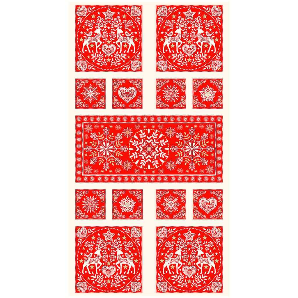 SCANDI 2022 / 2462 R / Zlato - červené vianočné vzory PANEL