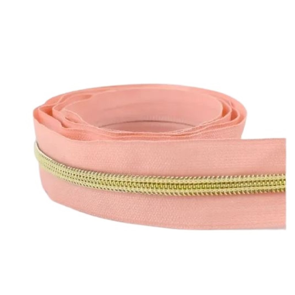 Zips metráž / 5 mm / lososový/ zlaté zúbky / CELÝ KUS - 1,17 m