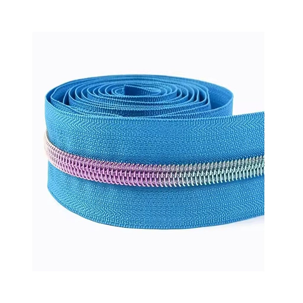 Zips metráž / 5 mm / modrý / dúhové zúbky