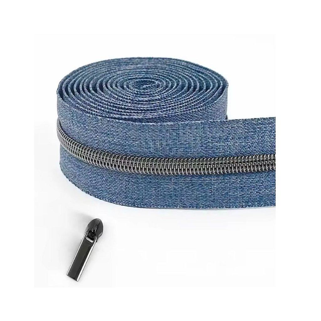 Zips metráž / 5 mm / rifľový / modrý / čierne zúbky