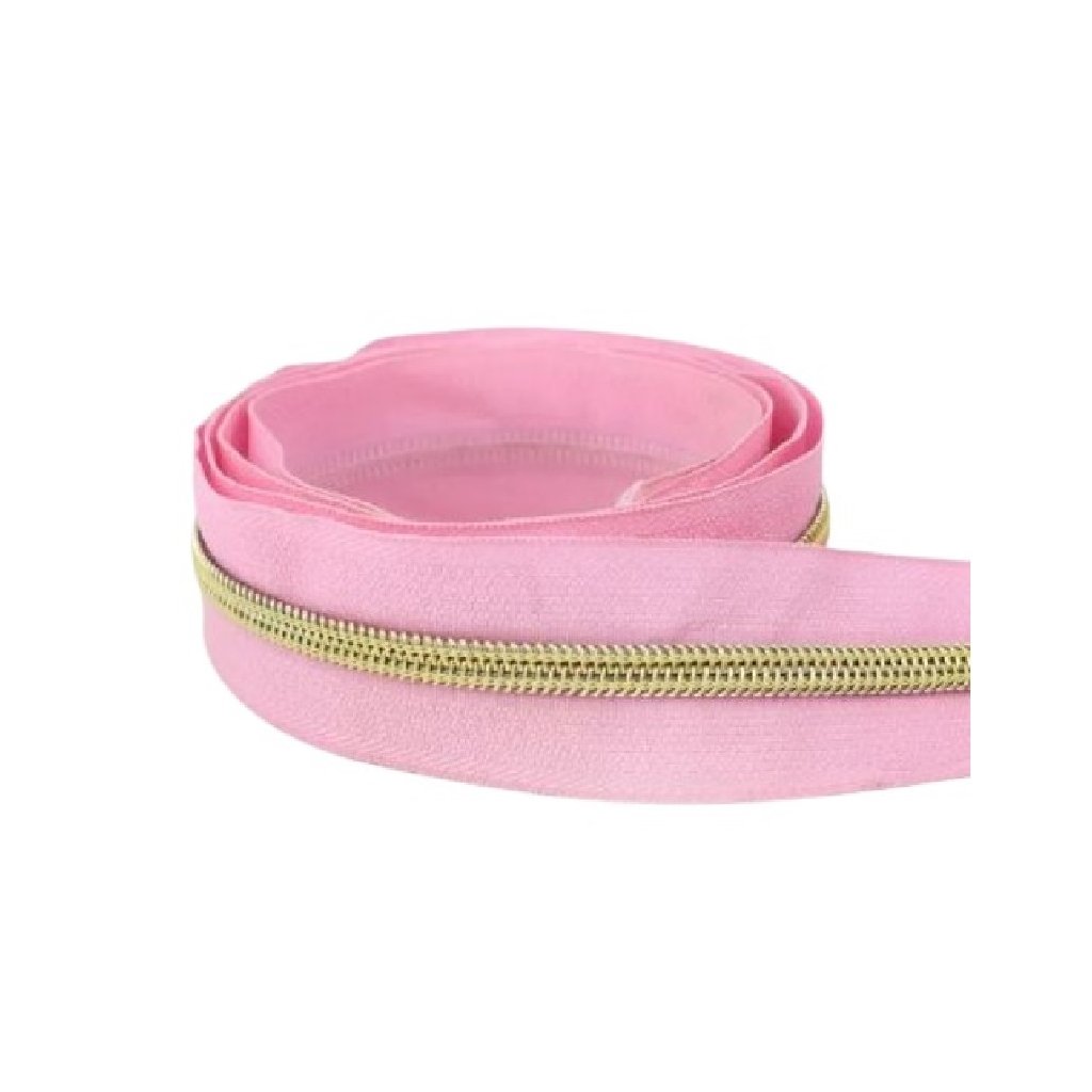 Zips metráž / 5 mm / ružový / zlaté zúbky / CELÝ KUS - 1,24 m