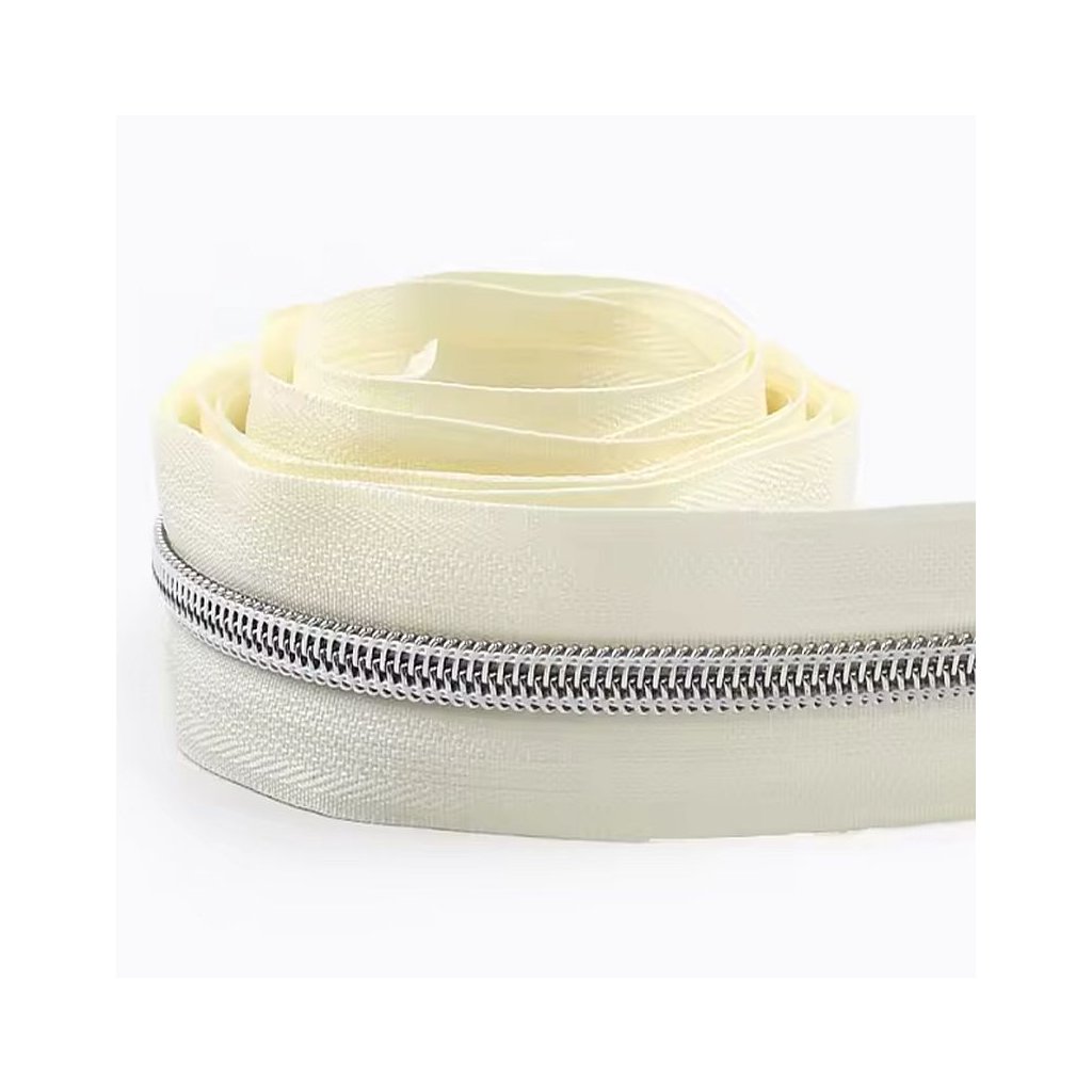 Zips metráž / 5 mm / smotanový / strieborné zúbky
