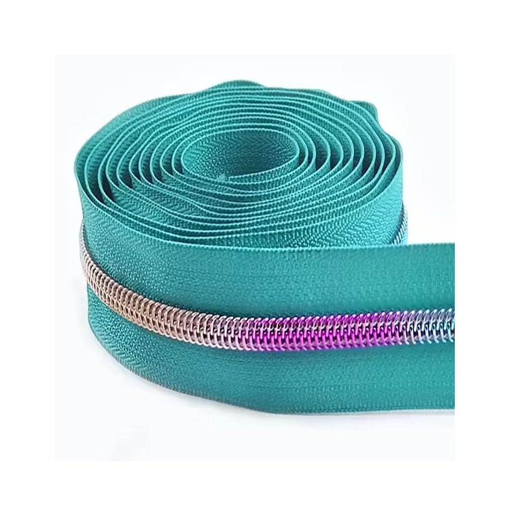 Zips metráž / 5 mm / tyrkysový/ dúhové zúbky